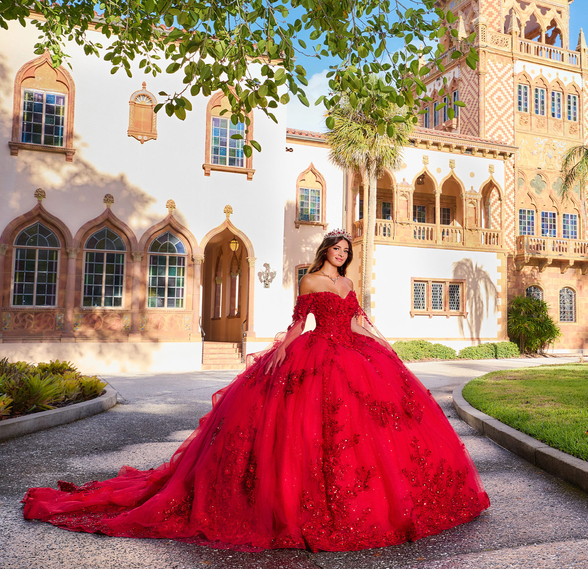 Steal the show on your special day in this beautiful ball gown. Adorned with three-dimensional floral appliques and delicate beaded lace, this Quinceañera dress is simply spectacular. The flattering sweetheart neckline and feminine off-the-shoulder design add a touch of romance, while the detachable sleeves make it easy to switch up your style—putting you in control of your perfect party look.